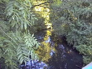 on devine la pointe du clocher du village, au milieu derrière les arbres