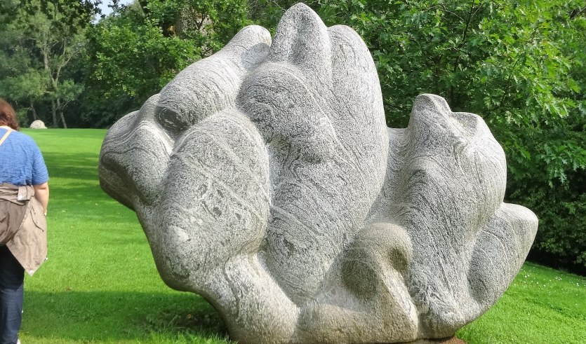 un beau parc avant l'arrivée au chateau avec de grande sculptures qui évoquent le passé et la cuture payenne de la Lettonie